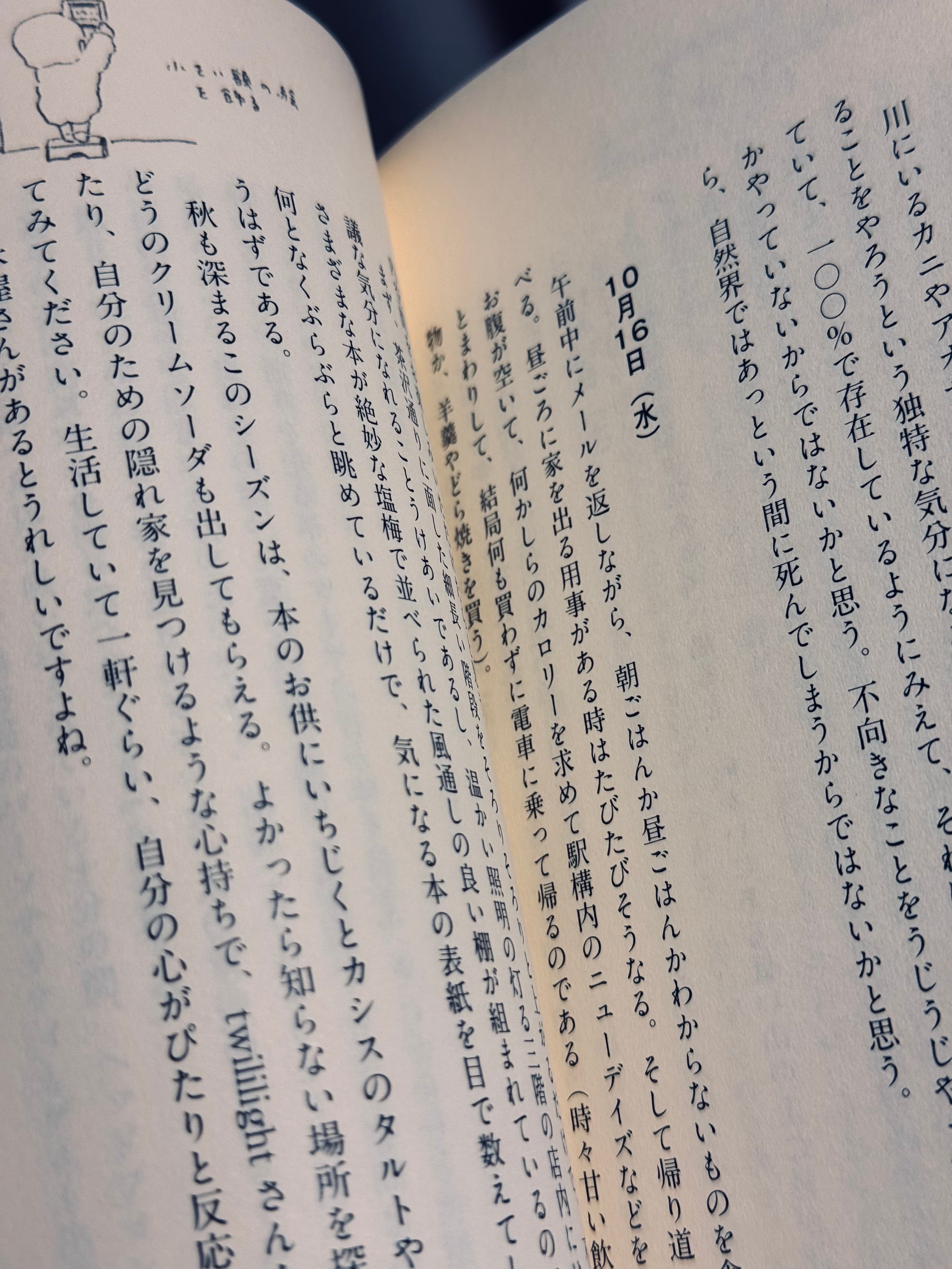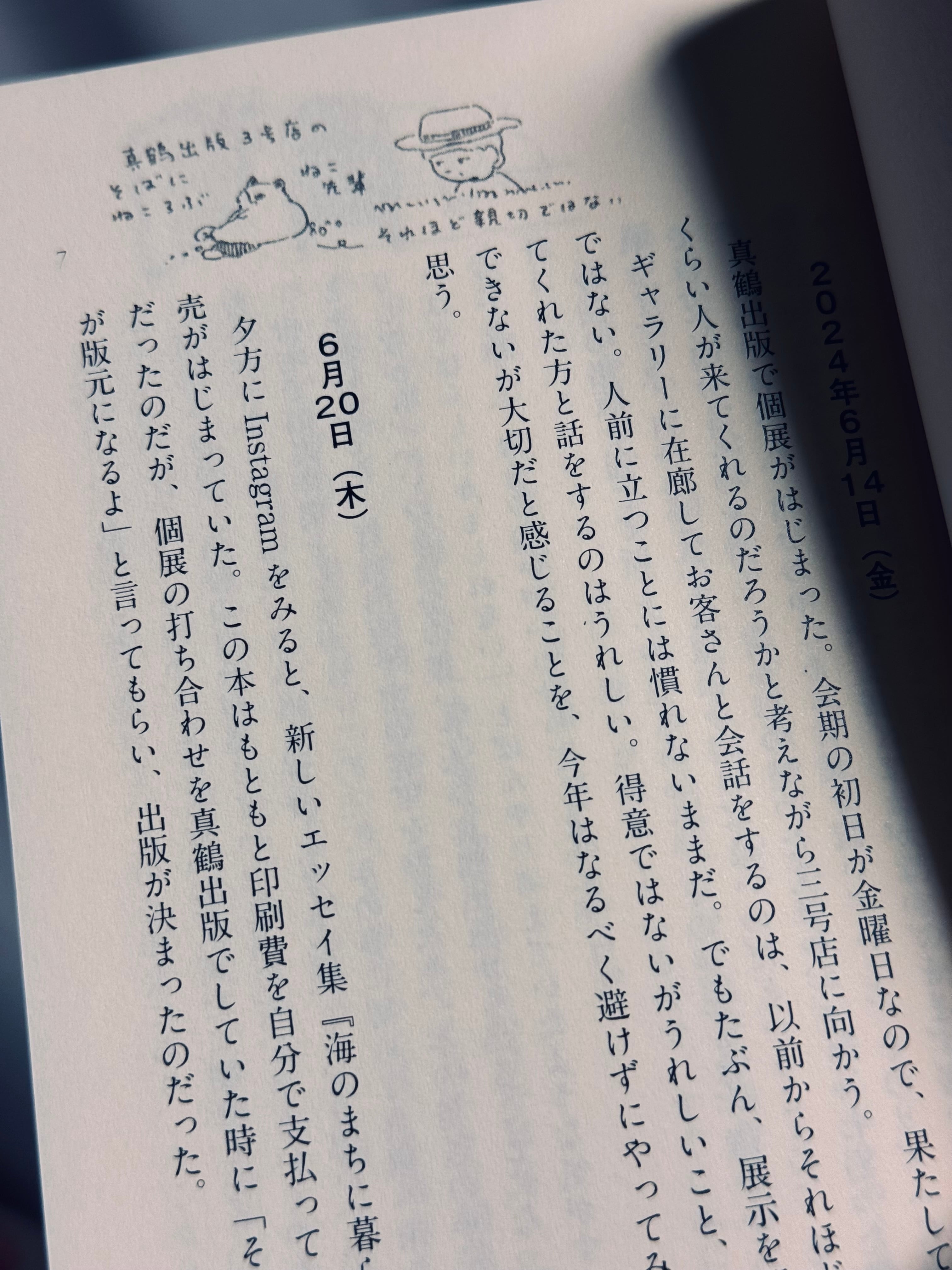 2024年6月14日(金)〜 2025年6月13日(金)までの日記を本にしたものです。本文200ページ、文庫本と同じA6サイズの判型です。ページの隙間に小さな挿絵もしのばせました。