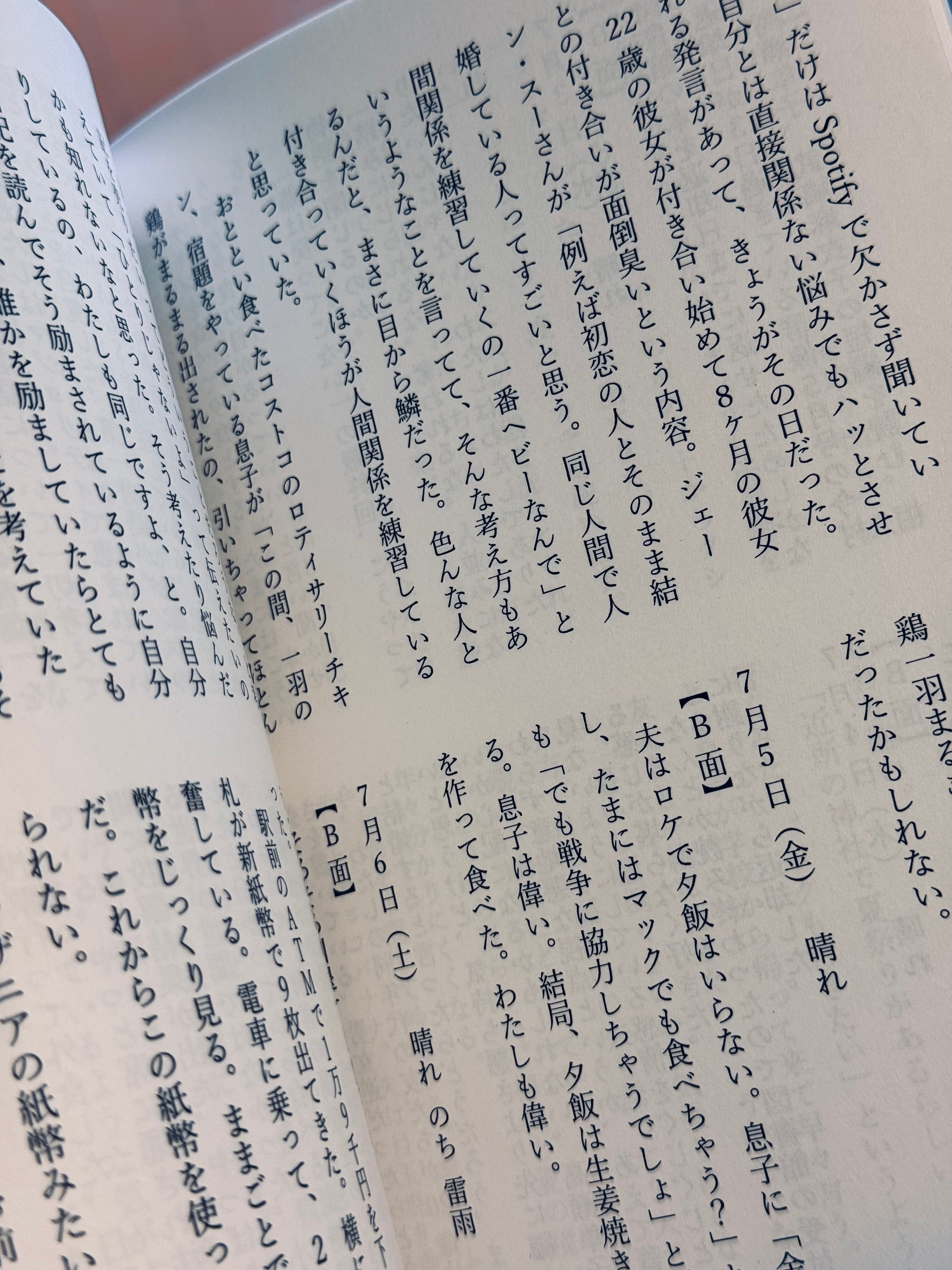 2024年1月、日記屋月日のワークショップ参加をきっかけに日記を綴り始め、ワークショップ期間の日記を昨年初めて「わがまま言えるって幸せなことだからね」というタイトルで製本しました。それから現在まで日記を書きながら日々生活をつづけています。